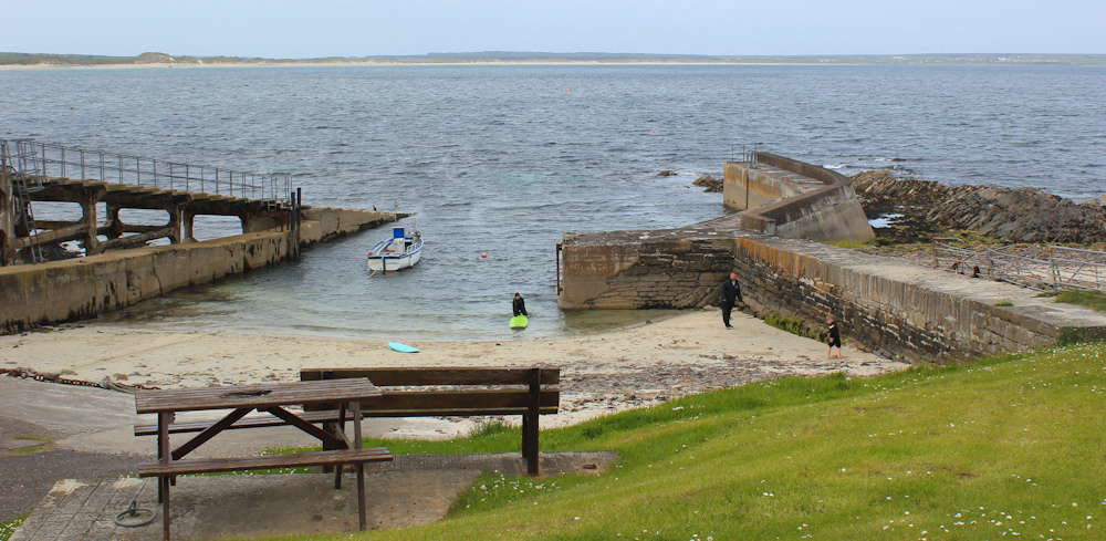 The road ends at a little harbour. I sit on the bench for a while and watch the children using paddle boards in the shelter of the harbour.