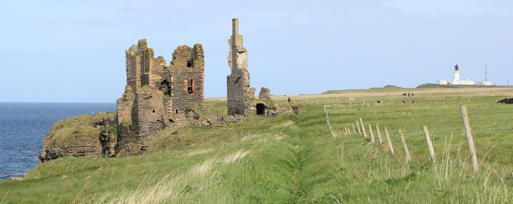 Post walk notes: You can stay in Ackergill Tower, and it has a sad love story attached to it: read here. Clan Gunn really exists, and is one of the oldest clans in Scotland with its own Clan Gunn Society. St Tear’s isn’t a real saint, but the St Tear’s chapel commemorates/mourns the massacre of infants by King Herod. It is also the site of an act of bloody treachery against Clan Gunn. Castle Sinclair also has an interestingly tragic history, having been nearly destroyed by family feuding.