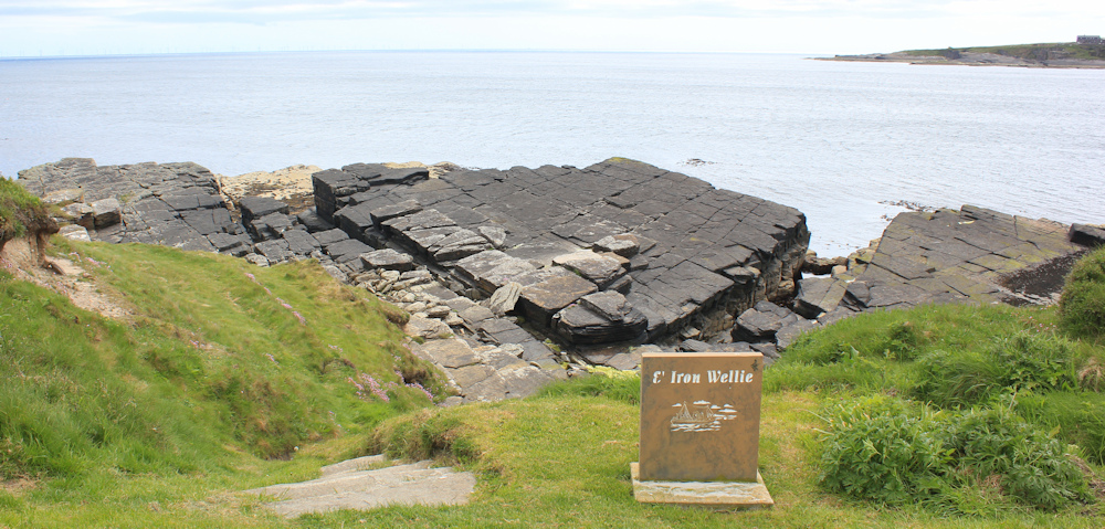 I’m walking up the estuary, heading westwards towards the main town of Wick. Soon come across this interesting stone. Is it a memorial to a man called Iron Wellie? Or a memorial to a wrecked ship called Iron Wellie? It’s a mystery.