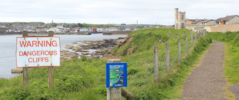 I pass a canon. Rather threateningly, it is pointing directly at the town of Wick. Stop to take a closer look, and it turns out to be an old fog cannon. Presumably it was moved here from another position. Or, I hope, it only fired blanks!