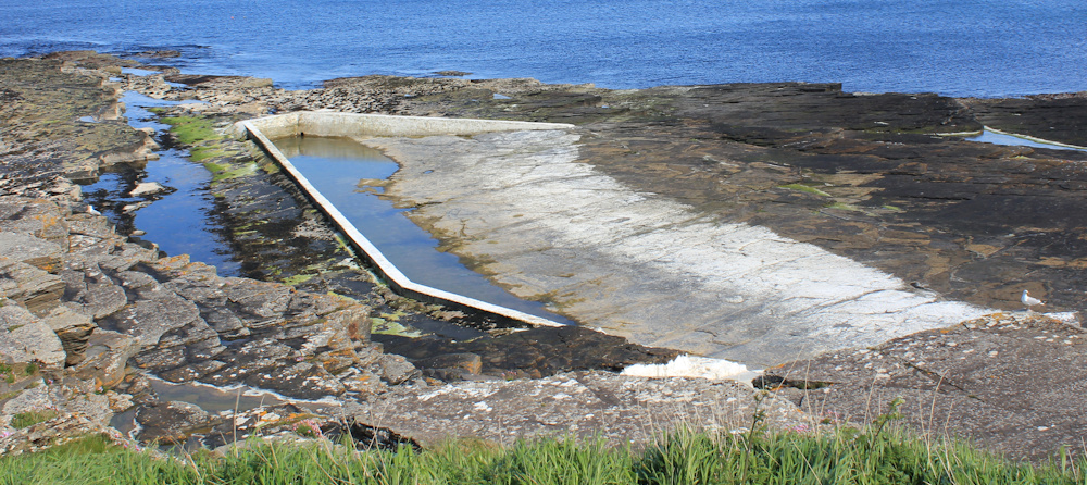 I’ve left Wick behind now. Further along, and here is another pool in the rocks. Again, the application of concrete seems to have formed an artificial basin.