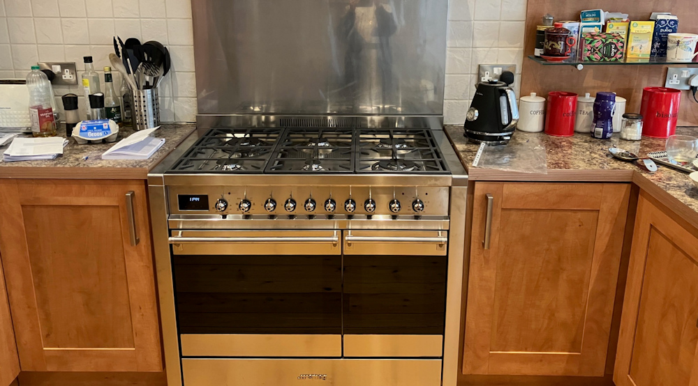 I finally had the energy to contact local gas fitters. Only one firm agreed to take on the difficult task of installing the new cooker – and I spent a day of high anxiety as they erected some rickety-looking scaffolding, set up a tiny-looking pulley system, and attempted to hoist the monstrous thing through the first-floor living room window.