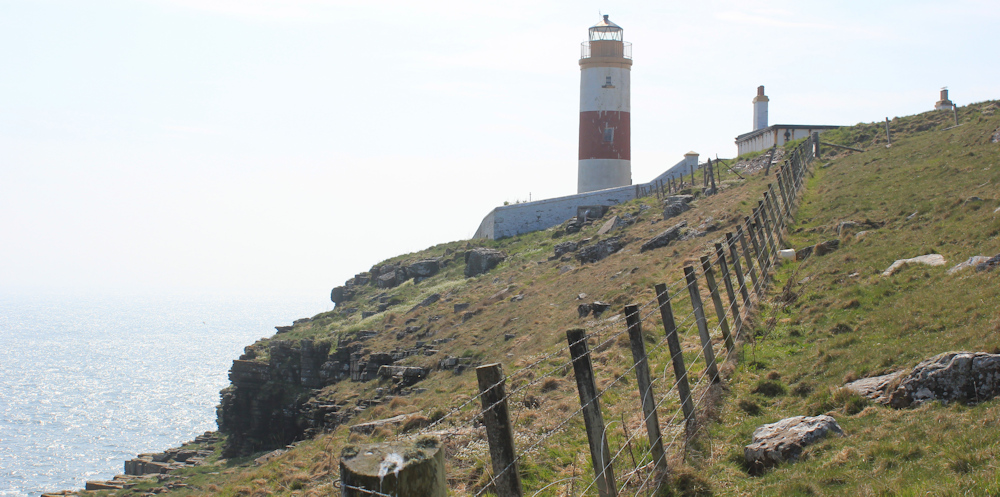 The John o’Groats Trail is signposted round the back of the lighthouse. As I get nearer, the rusty markings and faded paint become obvious. Poor old lighthouse.