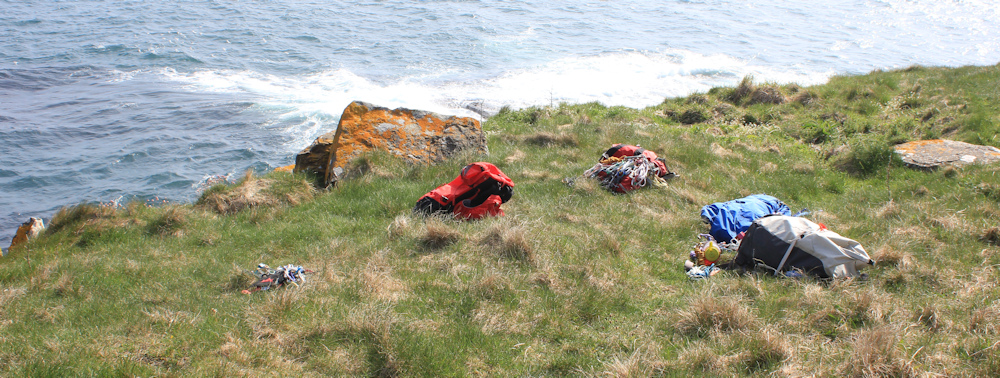 More rucksacks at the edge of the cliff. More invisible climbers!