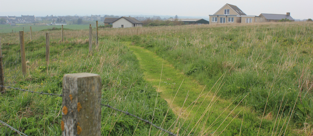 The JoG Trail takes me inside a fence and… oh wonderful… a mown green track will lead me straight into Lybster. Excellent. I’m so very tired now.