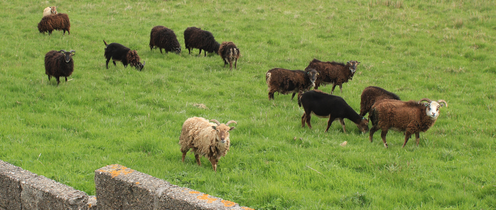 Hello sheep. You look very cosy in your shaggy fleeces. They look a bit like Hebridean sheep, but Hebridean sheep are black, and these are brown and cream. So, I don’t know what they are.