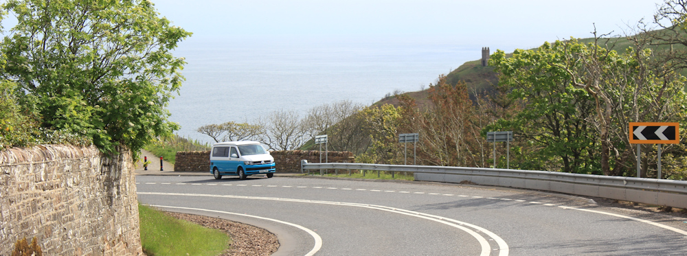 The road now hugs the coast, but runs high above the sea. I’m about to turn off here, to take a break from the main road via a little detour to a place called Newport.