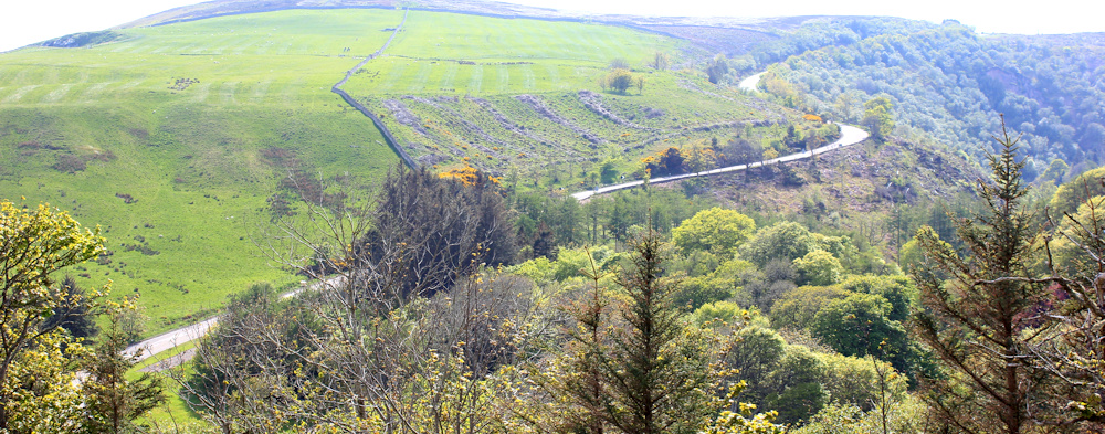 Rising higher, I get a wonderful view looking back. Love the patchy light on the green fields, the streaks of yellow gorse, and it is good to see the sea – if only in the distance.