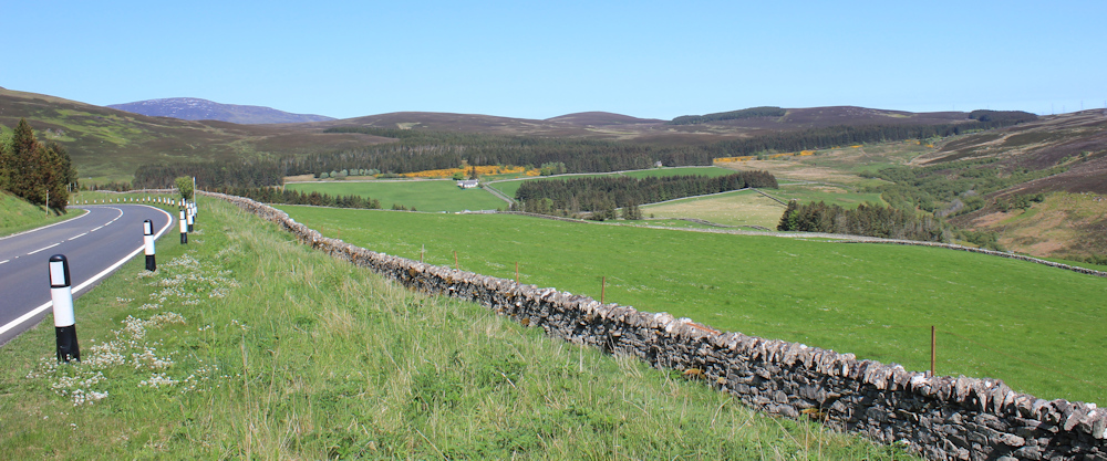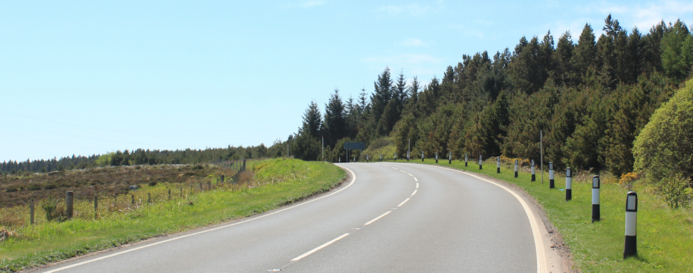 I’m approaching a sharp U bend, where the A9 passes over the Ord Burn. The river runs through the bottom of a deep valley, barely visible from the road.