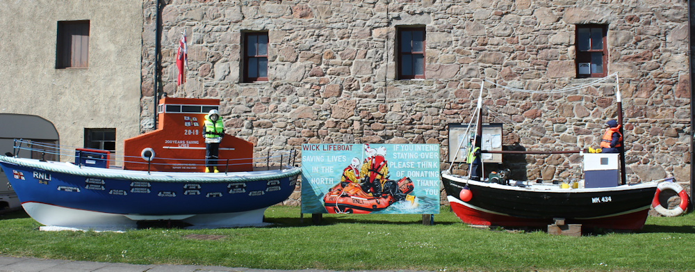 A nearby sign is for the Wick Lifeboat: “If you intend staying over please think of donating thank you.”