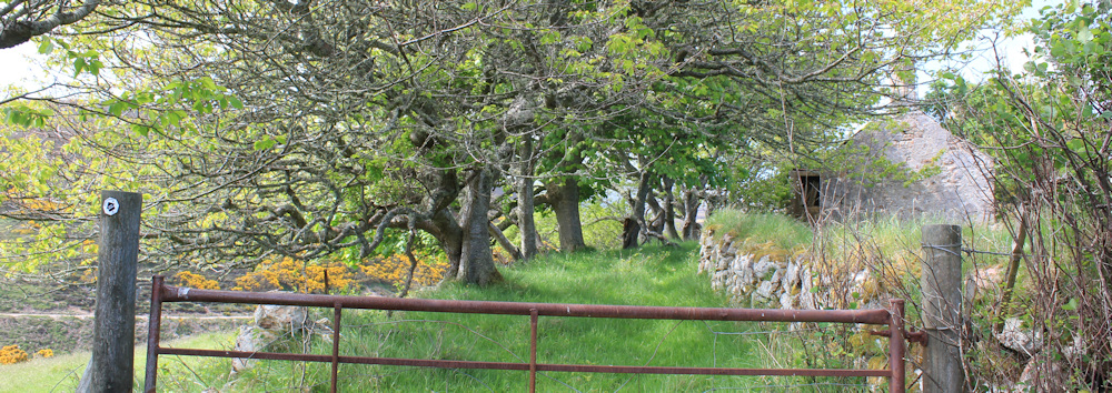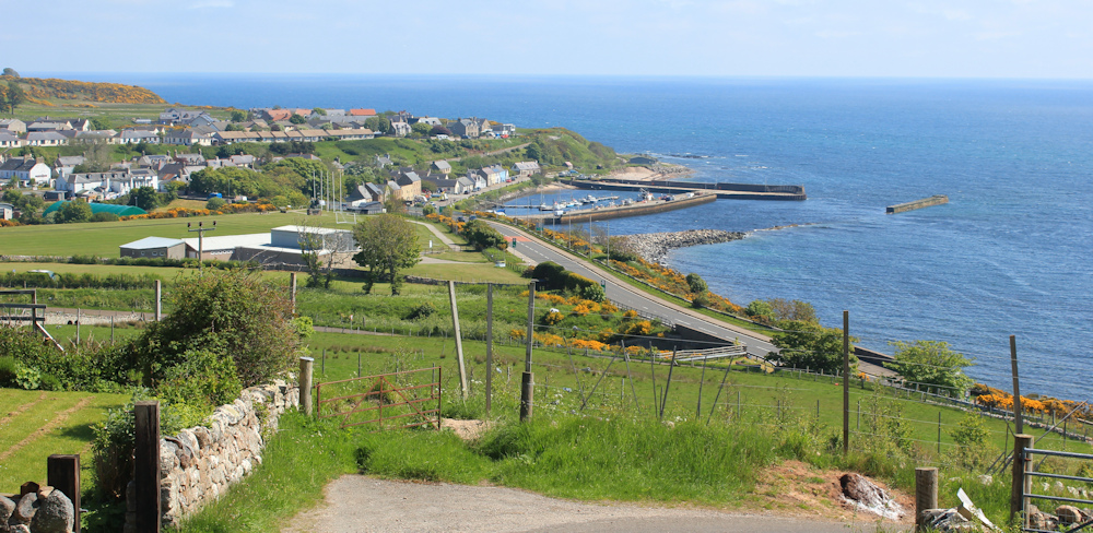 The track twists and turns, and I round each corner with my heart in my mouth, wondering when I am going to meet the cows. It’s a relief to see houses below me – Portgower – and no sign of any cattle. Whew!
