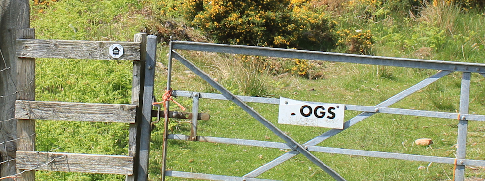 But the gate below me has a sign. “OGS”. Obviously the sign has lost a letter. Could be “LOGS”, but I suspect it is “DOGS”. Oh dear. I’m glad I have my pole with me.