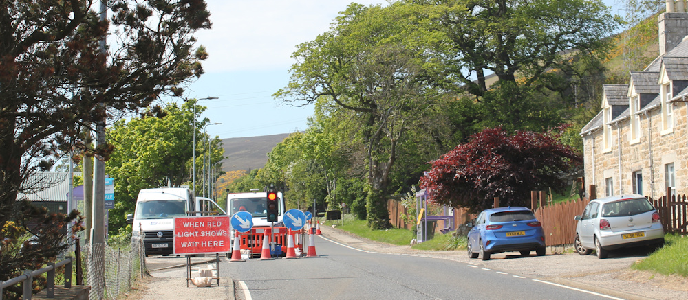 Back on the A9, the traffic flow is disrupted by roadworks. The traffic lights held me up this morning when I road my bike along here earlier. It is much easier to navigate this stretch by foot.