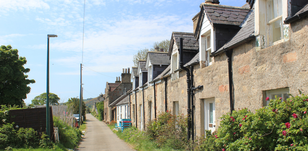 I turn off left along a little road, and discover something rather lovely. The cottages which line the A9 along the seaward side of Portgower have turned their backs on the main road, and face this quiet little lane instead.