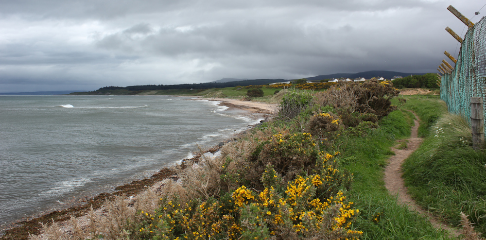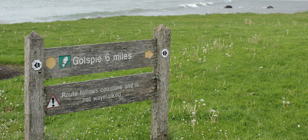 I’m heading south along the sea front. Following a road at this point. “Golspie 6 miles” says a sign, and tells me, “Route follows coastline and is not waymarked.”