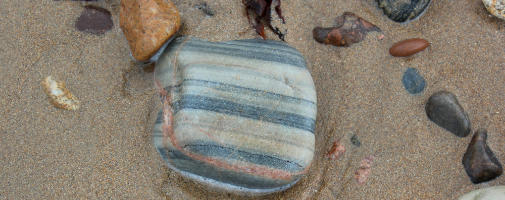 I can’t resist taking photos of the lovely pebbles on the beach – some with dramatic markings. This one looks too geometric to be real. I think of all the aeons of history held within that one small rock. Geology really is amazing.