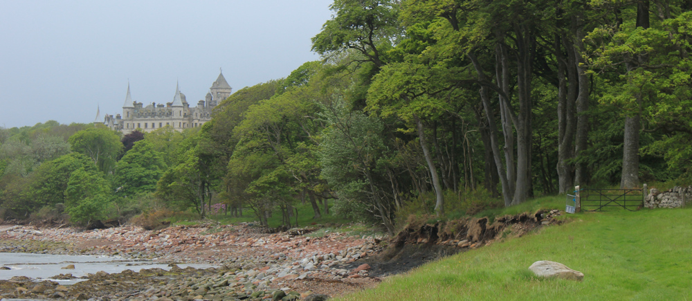 Ah, there is a beautiful castle ahead. Dunrobin Castle. It doesn’t look like your average Scottish castle – grim and forbidding – but more like an elegant French chateau.