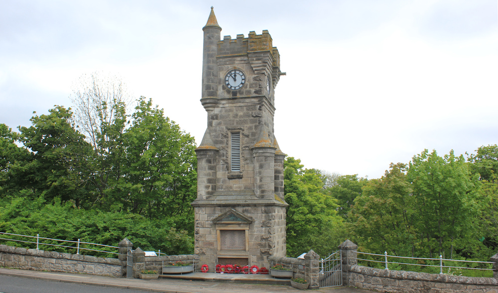 The bus drops me off on the outskirts of Brora. I walk past an interesting clock tower / memorial…