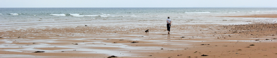 As I get closer to Brora, people begin to appear on the sands. A few dog walkers, and a couple with a little girl who falls on the wet sand and shrieks at the chill of the water.