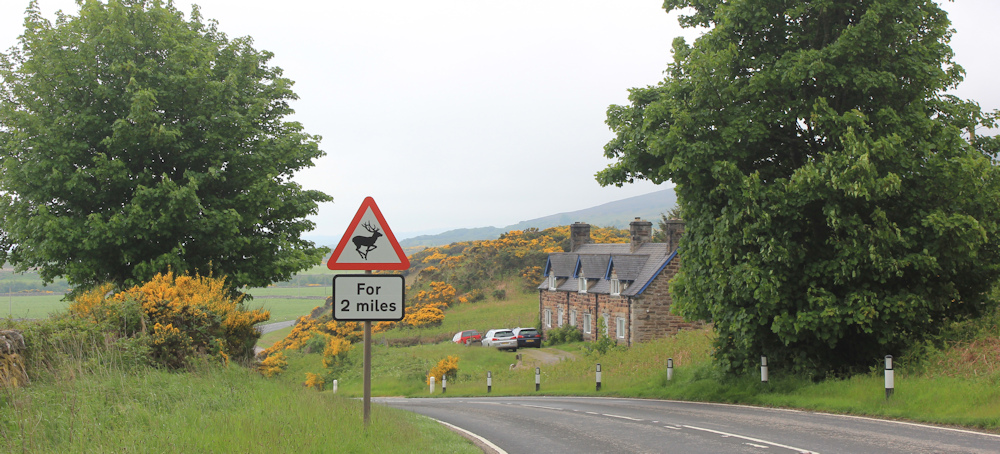 At the top of the road, I pass beside a farmyard and a farmhouse, before joining the A9.