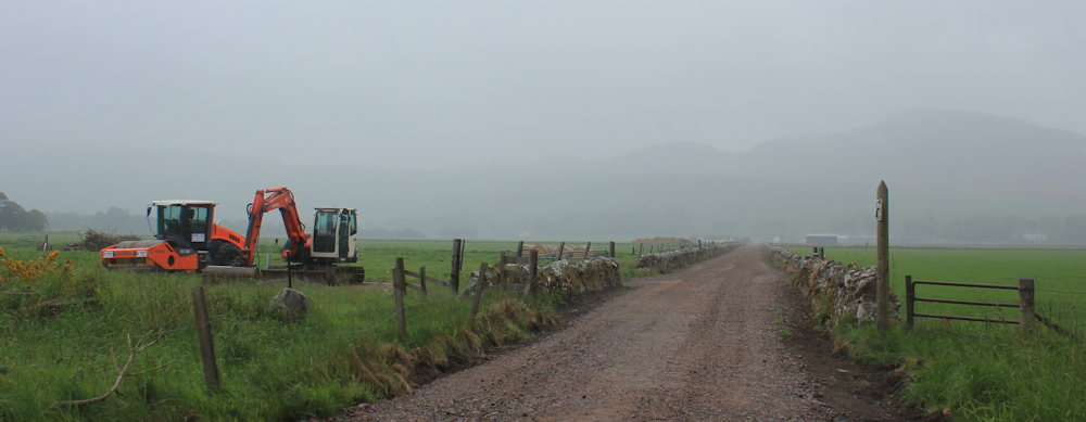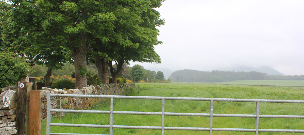 This track takes me out of the woodlands, and out of the Fleet Loch Nature Reserve. Now I’m walking through farmland. I know it’s farmland, although I really can’t see very much!