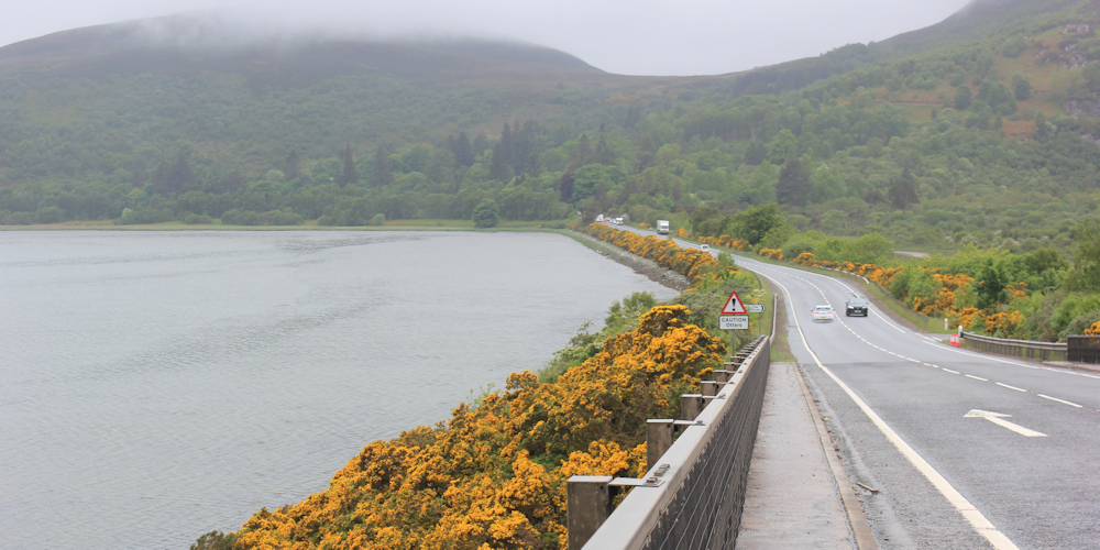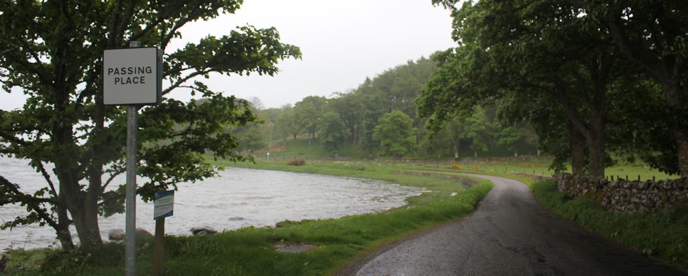 Onwards. It is a narrow road with passing places. Luckily hardly any other traffic decides to take the Scenic Route.