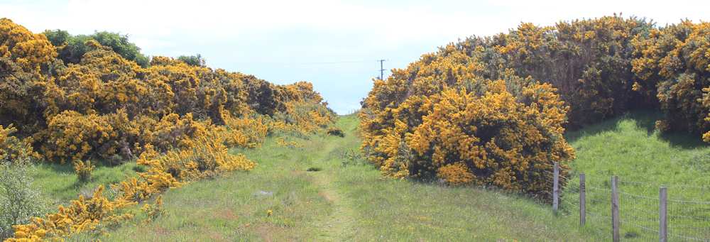 …finally, I end up walking along a lovely, grassy path. The smell of gorse is gorgeous.