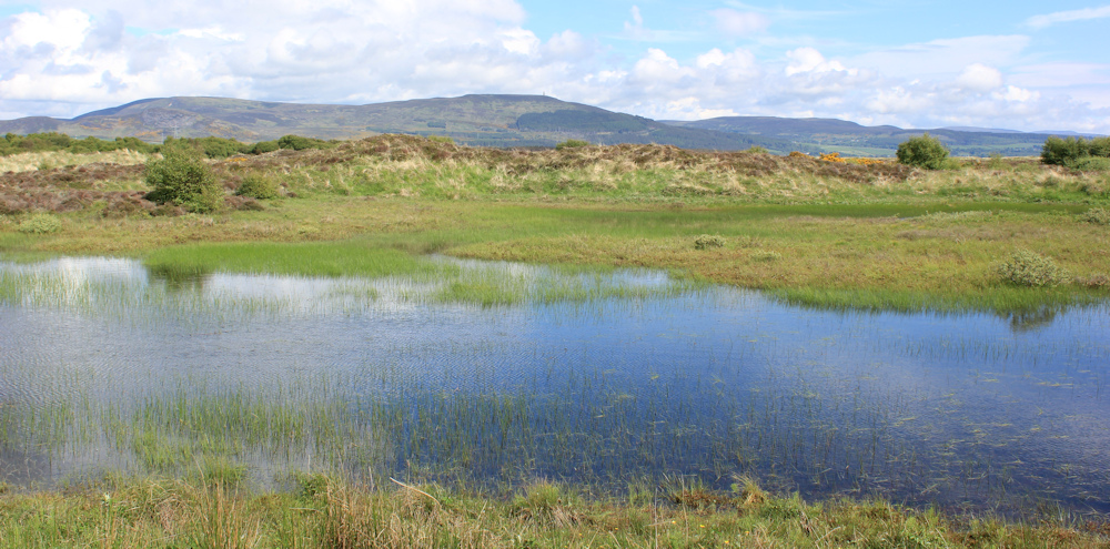 No sign of the sea at the moment, and no view of Loch Fleet either. But, the path passes an area of marsh and swamp, where the water is flat and still, and reflects the beautiful sky.