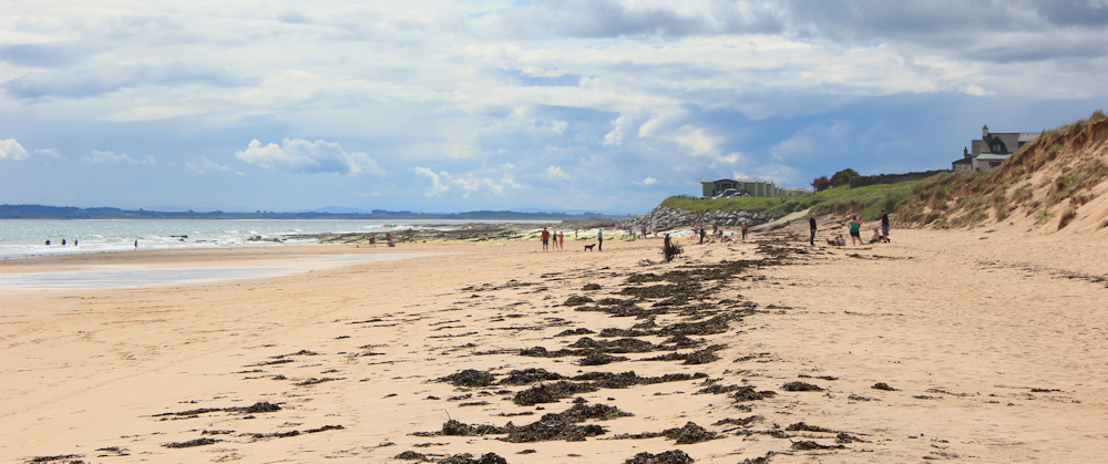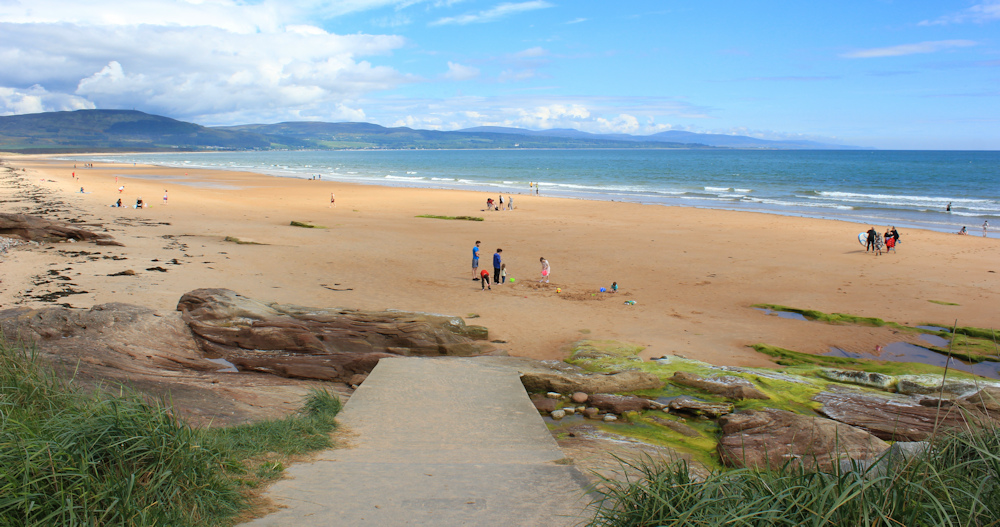 At the end of a beach, a slipway leads up to Embo. I stop at the top, turn round, and take a couple of photographs looking back at the beach.