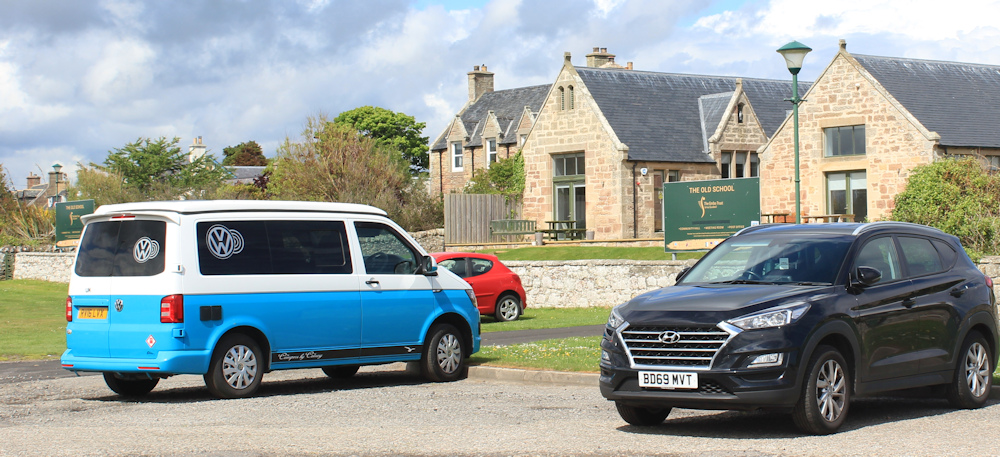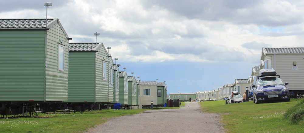 Sadly, Embo is not as scenic as the beach. I walk through the holiday park with its rows of metal cabins – and head up the slope to find my van.