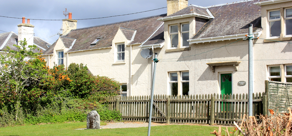 I catch the bus to Dornoch (a BUS – yes, I’ve reached civilisation again!) and walk back to where I ended yesterday’s trek. On the way, I pass a row of old cottages, one with a stone set in its garden. An ancient standing stone? A mile-marker? Or a gravestone?