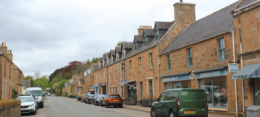 I arrive back in the main square (more like a triangle, to be honest) where the bus dropped me this morning. Dornoch Cathedral is visible behind the trees…