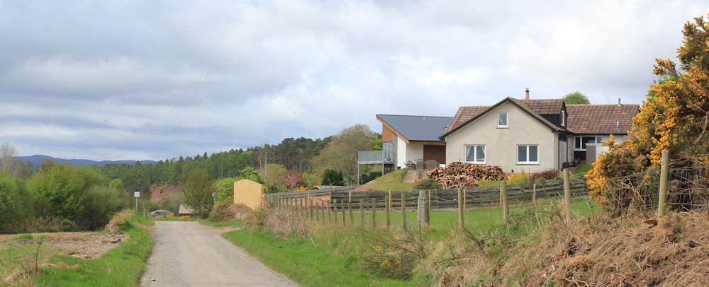 Although the landscape is very rural, there are houses dotted along the road. This modern bungalow seems out of place in the setting. But has great views over Dornoch Firth.