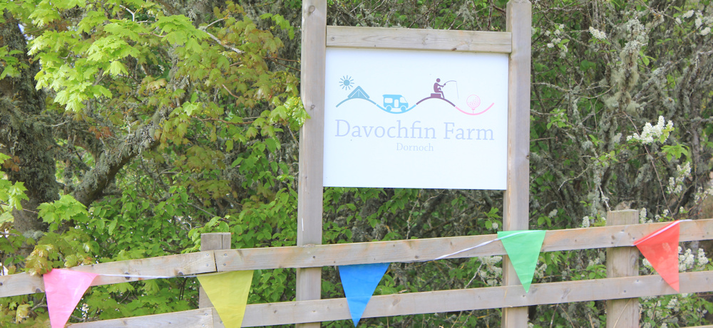 Davochfin Farm says a faded sign, above a string of cheerful bunting.