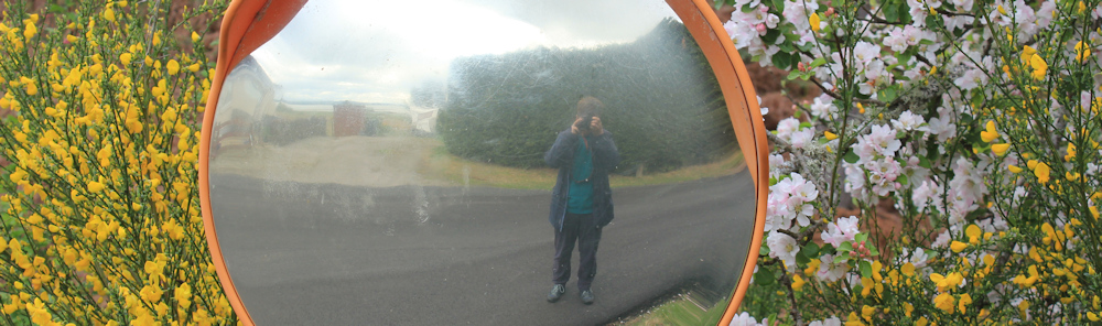 I can’t resist stopping beside the traffic mirror. Snap a self-portrait.