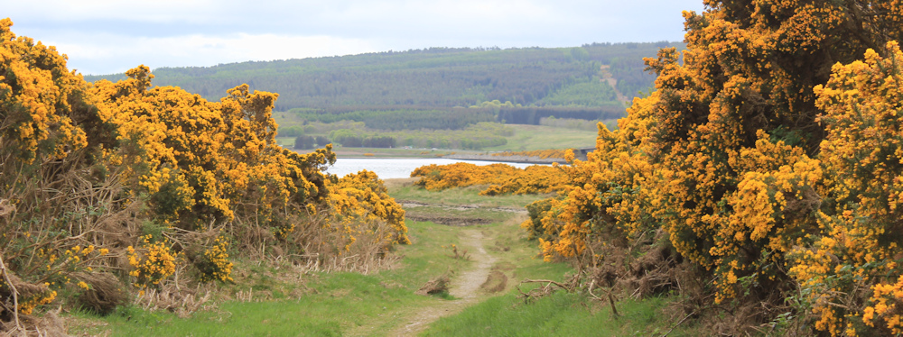 The road rolls on. Those distant hills are getting nearer. The smell of gorse is intoxicating… and I’m getting hungry. To my left is a footpath gate. Could I have walked the coast along Dornoch Firth after all?