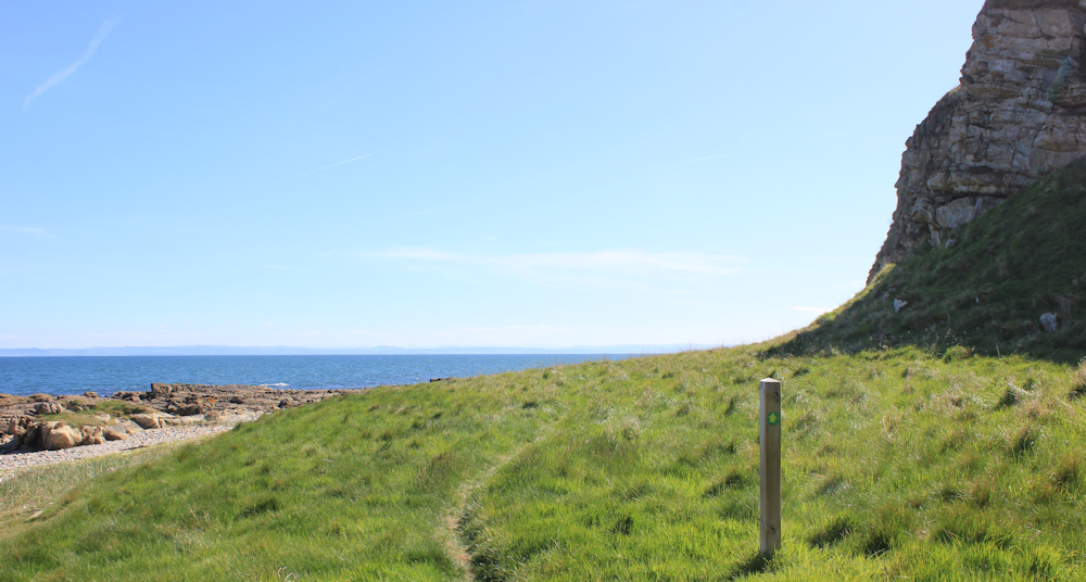 I reach Rockfield without twisting an ankle, and pick up a grassy path again. (Turns out that there IS a stile at the end of the field, and I needn’t have walked the shingle after all!)