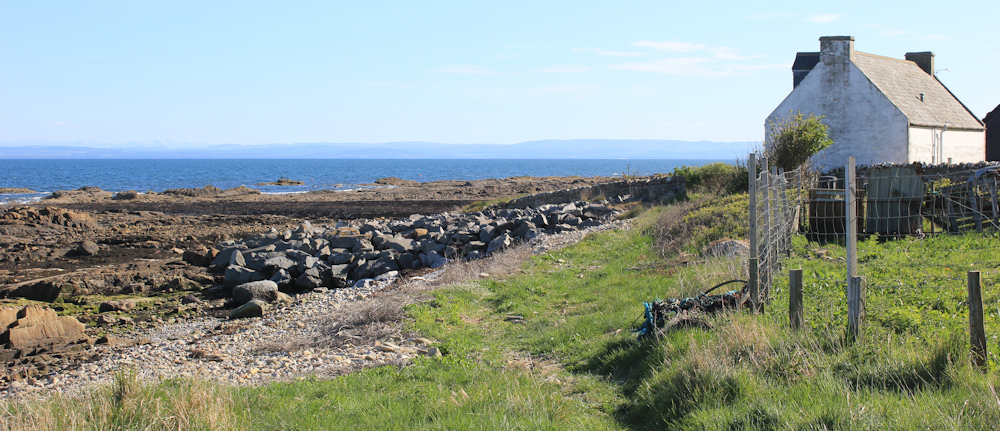 Rockfield is an eccentric sort of place. I rather like it, but I wonder who lives here permanently and how they cope with the weather over winter? The road is rough, the houses are small – mainly cottages – and they have little garden-areas on the other side of the road, with a mixture of sheds, summer houses, and green spaces backing onto the beach.