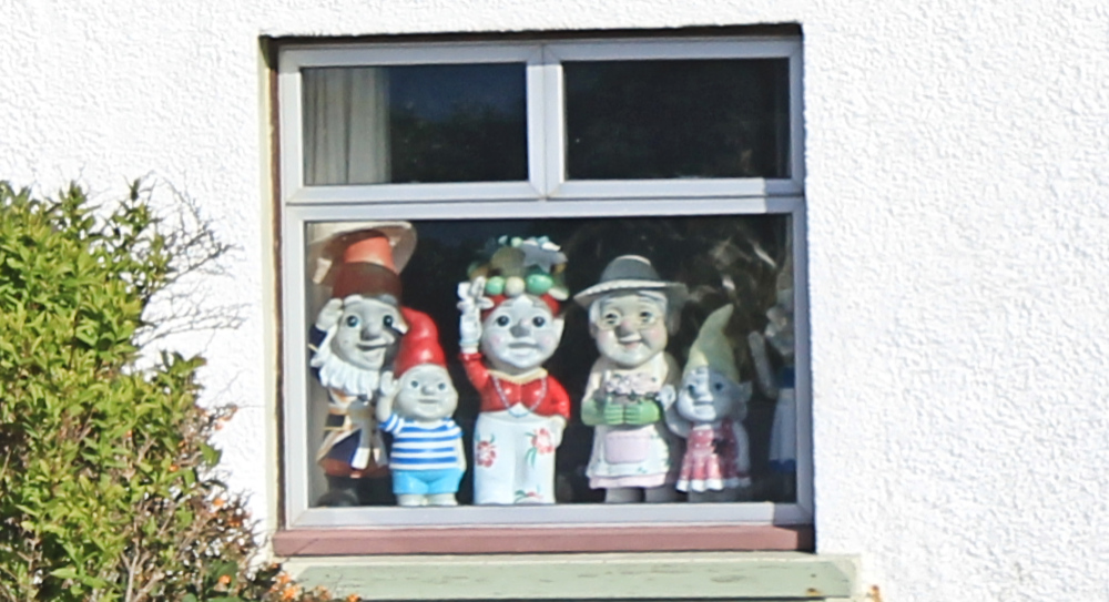 The gnomes are still watching me from a nearby window. They seem to be enjoying the sun too.