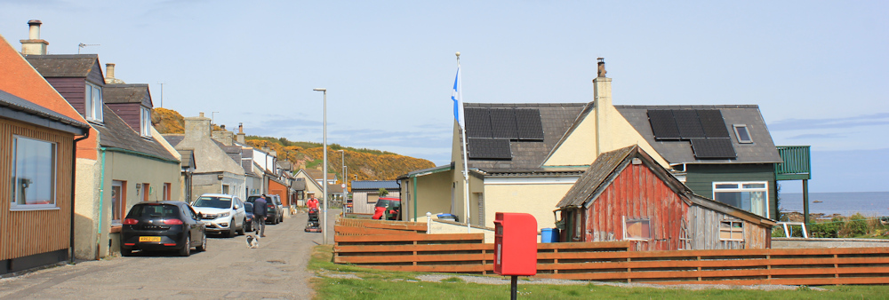 Beyond the building is a wide bay, and there is Balintore. Sadly the sun is not shining on the village, so my photos of the place look lack-lustre, but it is good to see my destination.