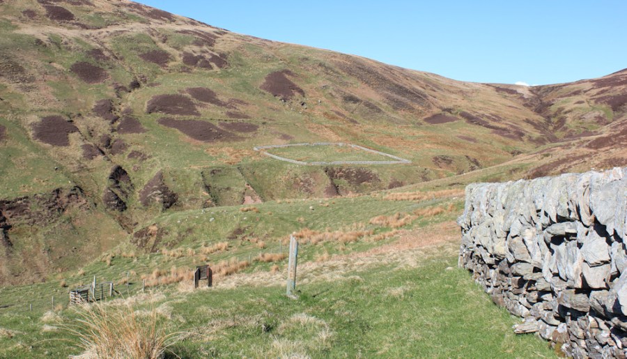 47 Sheepfolds, Innean Glen, Ruth hiking the Kintyre Way