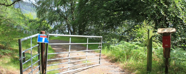 At the end of the public road, I park Scooty behind a convenient tree. Here, a track leads onwards to Totaig.